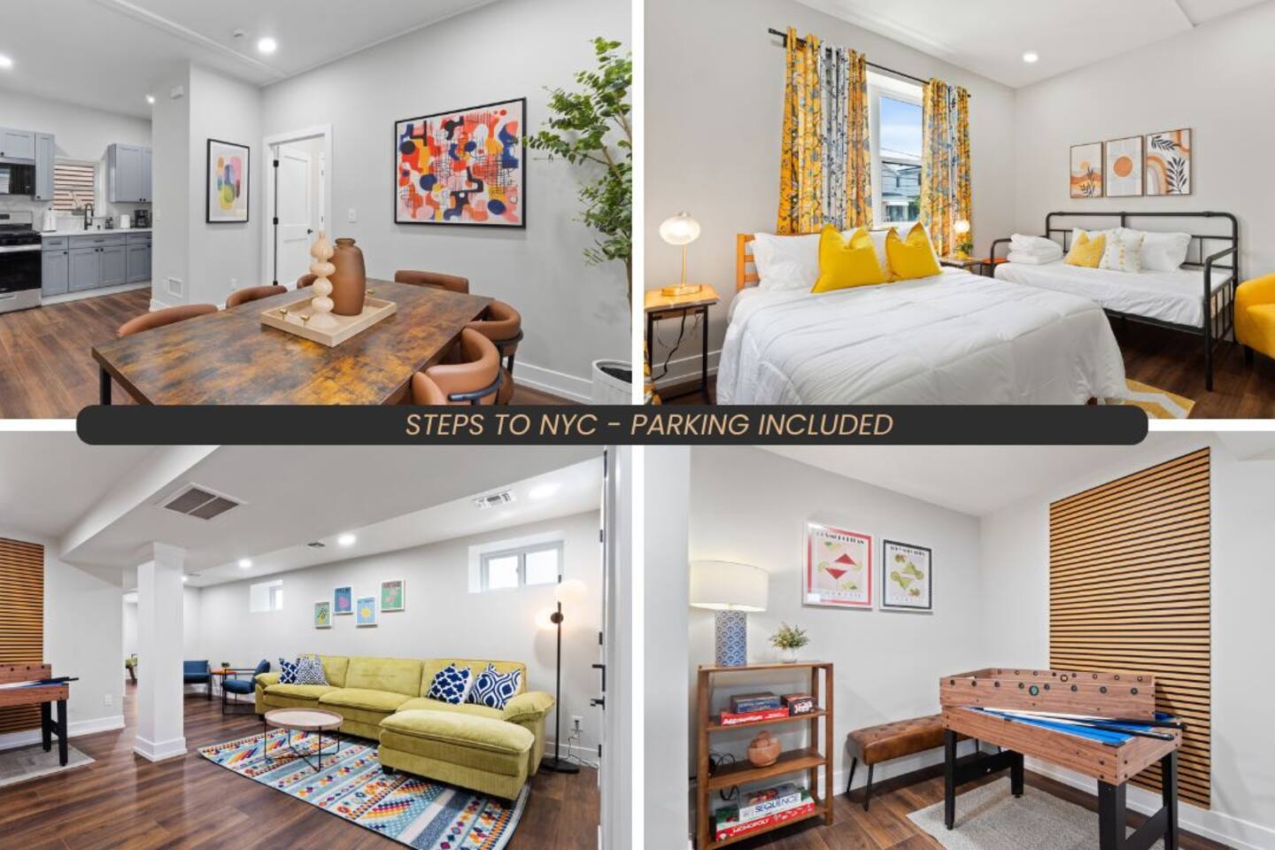 Why Guests Love It: • Sleeps up to 9 guests with multiple living areas for downtime and entertainment. • Private backyard & patio — great for morning coffee, or relaxing outdoors. • Free on-site parking and easy street parking — rare and valuable near NYC. • Pet-friendly with outdoor space for pets. • Dedicated workspace & fast Wi-Fi — ideal for remote work or longer stays. • Self-check-in with smart lock makes arrival flexible and stress-free Perfect Location for Travelers: • Just minutes from Midtown Manhattan by public transit or rideshare — great for city trips without NYC prices. • Close to grocery stores, bakeries, coffee shops, diverse dining & cultural spots. • Central location for business travel, short breaks, family vacations, and group stays. Ultimate Comfort & Amenities: • Fully equipped kitchen with modern appliances for effortless cooking. • Multiple entertainment areas, including TV, game console, and board games. • Comfortable bedrooms with flexible sleeping arrangements. • Thoughtful family and kid-friendly features (crib, children’s dinnerware, playroom). • Safety features like smoke & carbon monoxide detectors and first-aid kit. Ideal For: Families, multi-generation trips, group stays, remote professionals, travelers exploring NYC without downtown prices, and pet owners Spacious North Bergen Home Near NYC, MetLife Stadium & American Dream Mall Stay in a comfortable, family- and group-friendly home in North Bergen, New Jersey, strategically located minutes from Manhattan, MetLife Stadium, and the American Dream Mall — one of the most searched destinations in the NYC metro area. This home is ideal for NYC sightseeing, concerts, sporting events, shopping weekends, and business travel, offering space, convenience, and easy transit without Manhattan pricing. 📍 Prime Location – Walkable Transit & Major Attractions Nearby Major Attractions & Venues (Easy Access): Times Square, Midtown Manhattan & Broadway – ~25–35 min by bus MetLife Stadium (NFL games, concerts, World Cup events) – ~15 min drive American Dream Mall & Nickelodeon Universe – ~15 min drive Madison Square Garden – ~30 min via transit Yankee Stadium – ~35 min Prudential Center (NHL, concerts) – ~25 min Edge at Hudson Yards & High Line – ~30 min Statue of Liberty & One World Trade Center – ~40 min Airports: Newark Liberty International Airport (EWR) – ~20 min LaGuardia Airport (LGA) – ~30 min JFK International Airport – ~45–60 min 🚍 Transit & Accessibility (Highly Searched Keywords) Walking distance to NYC express buses Direct routes to Port Authority Bus Terminal (Midtown Manhattan) Easy access to Route 495, NJ Turnpike & Lincoln Tunnel Rideshare-friendly location (Uber / Lyft readily available) 🍽️ Dining, Shopping & Local Favorites (Walkable Area) Steps from Bergenline Avenue, one of North Jersey’s most vibrant food corridors: Cuban, Colombian, Peruvian & Mexican restaurants Local bakeries, cafés, and coffee shops Supermarkets, pharmacies, and late-night dining Minutes from Edgewater Commons, Trader Joe’s, Whole Foods, and Hudson River waterfront dining