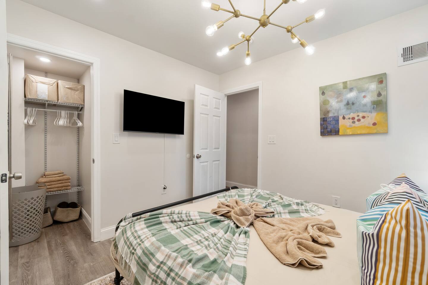 Wake up to city views from your private patio, enjoy the convenience of in-unit laundry, and stay connected with fast WiFi—all just minutes from Manhattan. This peaceful 1-bedroom retreat offers comfort, privacy, and unbeatable access to NYC, making it ideal for couples, business travelers, and extended stays. Start your morning with coffee on the patio while taking in skyline views. After a day exploring Manhattan, return to a quiet space designed for relaxation and convenience. The apartment is thoughtfully equipped to make your stay seamless, whether you're visiting for work or leisure. What You’ll Love • Private patio with seating and city views • In-unit washer and dryer • Fast WiFi for streaming and remote work • Smart TV • Fully stocked kitchen • Comfortable queen bed with fresh linens • Self check-in • Free street parking • Easy PATH access to Manhattan The bright living area provides a cozy space to unwind. Stream your favorite shows, catch up on emails, or simply relax after exploring the city. The kitchen includes cookware, dishes, and essentials so you can prepare meals at home when you prefer a quiet night in. The bedroom is designed for restful sleep, featuring comfortable bedding and a calm atmosphere. The in-unit washer and dryer are especially helpful for longer stays or business travelers. Location Highlights Located near Manhattan with convenient PATH access, you can reach NYC attractions quickly while staying in a quieter neighborhood. Explore Times Square, Central Park, Hudson Yards, and world-class dining—then return to your private patio retreat. Nearby you’ll find: • Local restaurants and cafés • Grocery stores and essentials • Public transportation options • Easy highway access This home offers the perfect balance of city excitement and residential comfort. Good to Know • Self check-in instructions provided before arrival • Quiet hours respected • No parties or events • Only registered guests permitted Whether you're planning a weekend getaway, business trip, or longer NYC visit, this space delivers patio views, laundry convenience, and easy Manhattan access in one comfortable setting. Dates fill quickly due to location and amenities—book now to secure your stay!