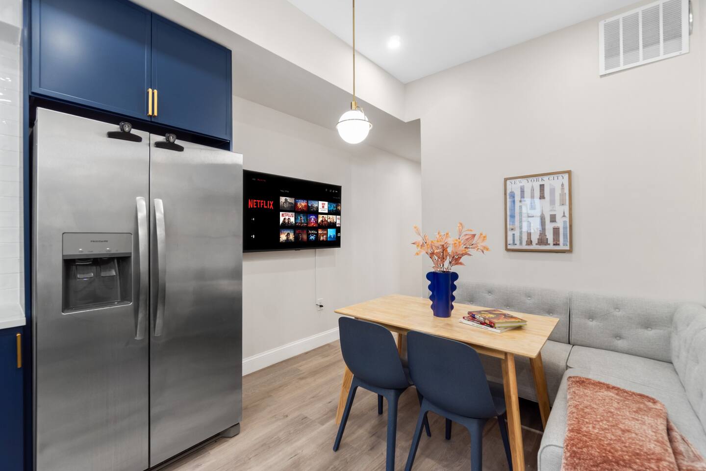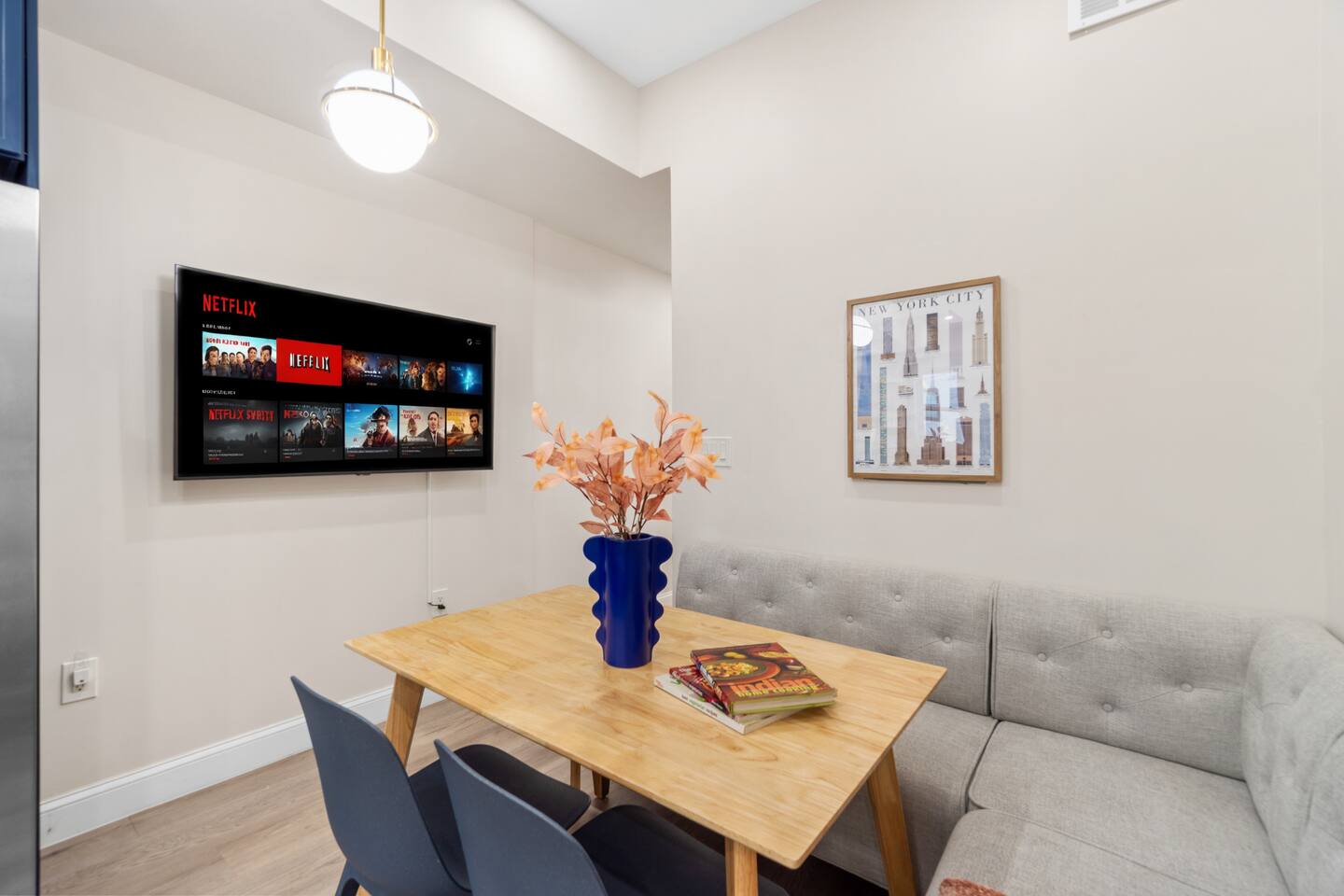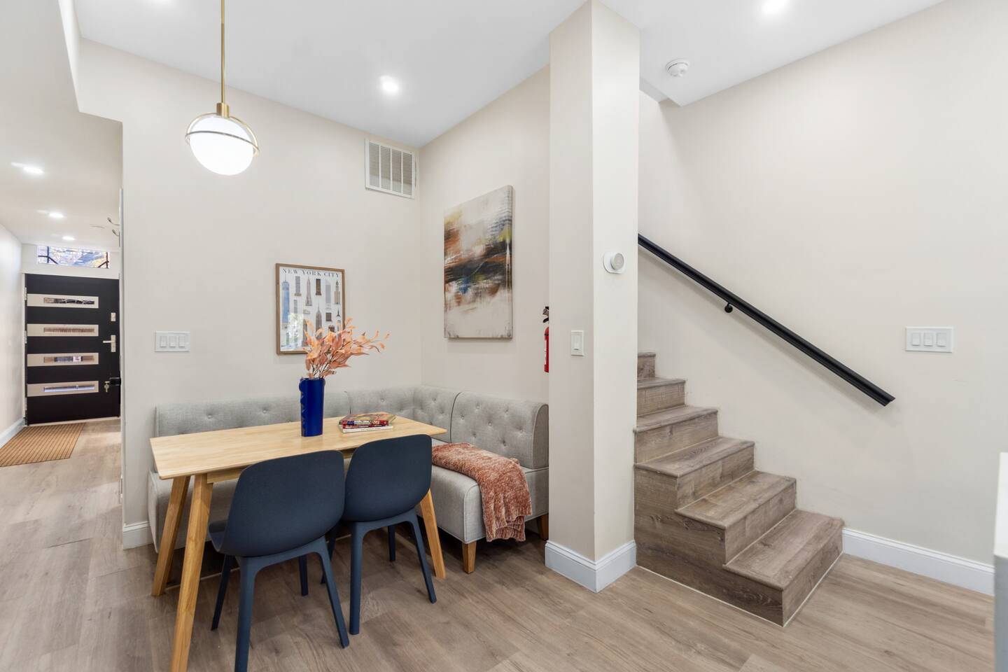 Experience comfort, privacy and convenience in this beautifully maintained home featuring a private entrance and easy access to the PATH train to NYC. Whether you're visiting for work, family time or a weekend getaway, this space offers everything you need for a smooth and relaxing stay. The private entrance allows you to come and go freely, giving you the comfort of your own separate space. Combined with fast Wi-Fi, a full kitchen and thoughtfully designed living areas, this home is ideal for both short and extended stays. Located near convenient transportation options, including PATH access to Manhattan, you can enjoy the energy of NYC while staying in a quieter residential neighborhood. ✨ Top Features • Private entrance for full guest privacy • Easy access to PATH train to NYC • Fast, reliable Wi-Fi • Smart TV for streaming • Fully equipped kitchen • Washer and dryer • Self check-in • Spacious bedrooms • Quiet residential setting Everything is designed to make your stay effortless. The space Soft winter light filters through the windows as you step inside, offering a calm pause from the chill outside and a comfortable place to settle between city adventures. Evenings unfold easily here, whether you return from exploring Jersey City or crossing into Manhattan, giving you room to unwind, reset, and enjoy familiar routines. With thoughtful touches throughout and the ease of a private entrance, this home creates a welcoming base for a cold-season stay. Sleeping arrangements Three bedrooms and three beds accommodate up to six guests, each room prepared with essentials that support a restful night. Bed linens, towels, extra pillows and blankets, room-darkening shades, clothing storage, and a safe help you settle in with ease, whether you're staying for a quick visit or a longer winter retreat. Indoor comforts The living area offers a warm place to gather on quiet nights, with TV, books, board games, and arcade games adding simple comforts when you choose to stay in. Heating keeps the space cozy during colder months, while air conditioning and portable fans stand ready for shifting temperatures. A washer and dryer make extended stays more seamless, and the dedicated workspace with wifi supports productive moments when work calls. Kitchen and dining The full kitchen provides everything you need for everyday cooking, from preparing breakfast before heading out to enjoying dinner at the dining table after a full day in the city. With a refrigerator, stove, oven, microwave, dishwasher, and other kitchen basics, you can cook at your own pace without leaving home. A coffee maker and hot water kettle add ease to slower winter mornings, while a mini fridge and freezer offer added storage. Bathroom essentials Two full baths help mornings and evenings flow smoothly, each stocked with bathroom essentials. A hair dryer and cleaning products contribute to a practical daily rhythm, giving you one less thing to think about during your stay. Outdoor living A private entrance leads to shared outdoor spaces that offer a refreshing breath of cold winter air when you want to step outside. The shared patio or balcony and the shared fully fenced backyard create options for a quiet moment outdoors, supported by outdoor furniture and a simple open space. Family-friendly features Families will find thoughtful conveniences such as a crib, Pack ’n play/Travel crib, folding or convertible high chair, children's dinnerware, and a selection of books and board games, making it easier to spend time indoors during colder weather. Parking, access, and safety Free street parking is available, along with a paid parking garage off premises if preferred. Self check-in through a smart lock ensures a smooth arrival, and the home includes smoke and carbon monoxide alarms, a fire extinguisher, a first aid kit, and exterior security cameras with a doorbell and outdoor floodlights for added awareness. Neighborhood Set in a convenient part of Jersey City, you'll be close to local dining, parks, and transportation links such as PATH and Light Rail, with Liberty State Park, Journal Square, and the Downtown waterfront nearby. It's an easy starting point for exploring both the neighborhood and New York City before returning to the comfort of the home. Perfect for This pet-friendly space suits business travelers, couples, friends, and small groups looking for a balanced stay with room to work, rest, and enjoy the winter season. Long term stays are allowed, with cleaning available during stay for added convenience. Guest access Guests will have private access to the apartment via a private entrance, allowing for independent check-in and a smooth arrival. Outdoor spaces are shared and respectfully maintained. • Private entrance access to the unit • Shared outdoor spaces include fenced backyard and patio/balcony ⭐ Clear access setup helps avoid confusion and supports a comfortable stay. Other things to note A few helpful notes to ensure guests know what to expect and can plan confidently. • Long-term stays (28+ days) are allowed and supported by kitchen + laundry • Mid-stay cleaning can be arranged upon request for extended stays • Shared outdoor areas are respectfully maintained and available for guest use • Exterior security cameras are installed for property safety 🛋 Living Space The living area is bright, clean and welcoming — perfect for relaxing after a busy day in the city. • Comfortable seating • Smart TV • Dedicated space to unwind • Strong Wi-Fi connection Great for movie nights, remote work or planning your NYC adventures. 🍳 Kitchen & Dining The full kitchen makes dining in simple and convenient. Includes: • Full-size refrigerator • Stove & oven • Microwave • Coffee maker • Cookware & utensils • Dining space Perfect for morning coffee before heading to Manhattan or winding down with dinner at home. 🛏 Bedrooms & Comfort Each bedroom is designed for restful sleep and c