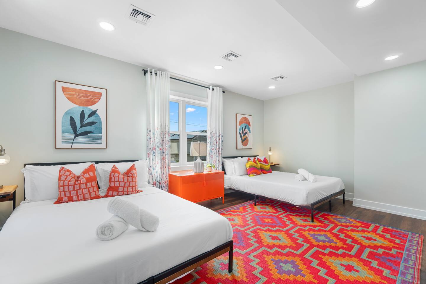 Our home is located in North Bergen, a vibrant neighborhood just across the Hudson River from Manhattan. The area blends convenience with charm: you’ll find coffee shops, family-run restaurants, and markets within walking distance. Parks and playgrounds nearby make it easy to relax with kids, while views of the NYC skyline can be enjoyed just a short stroll away. It’s a quiet, residential community that offers a calm retreat after a busy day exploring the city.