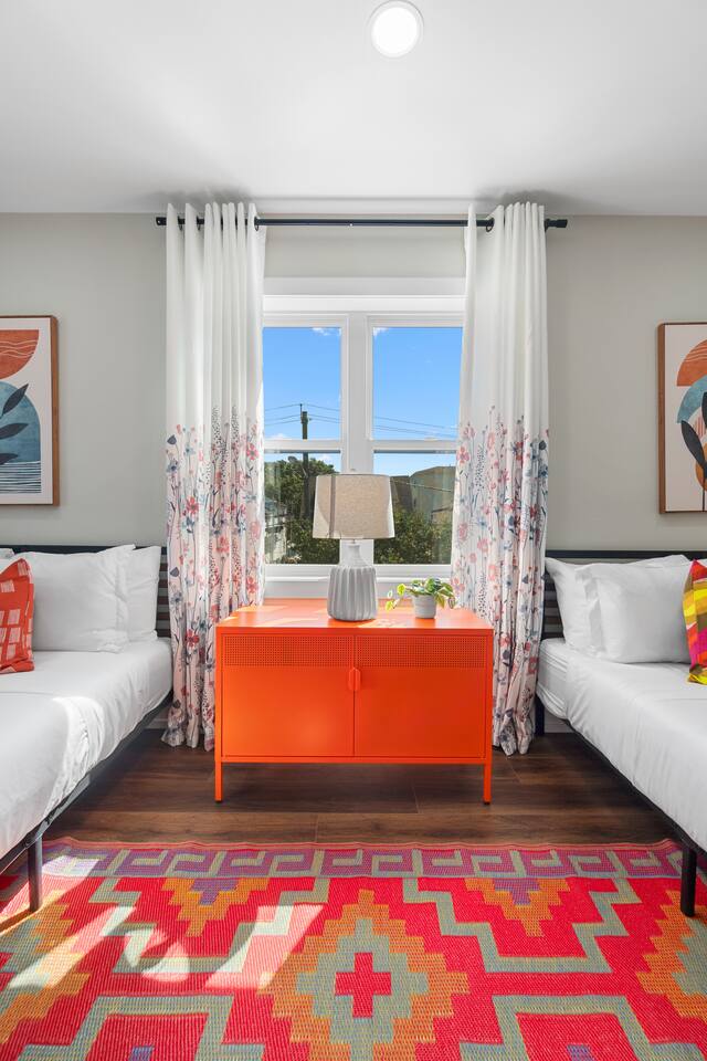 Soft light filters through this North Bergen retreat as you ease into a calm residential setting just beyond Manhattan. The quieter pace pairs naturally with the cool February season, giving you a comfortable place to unwind after time spent exploring the city. Whether you settle in for a relaxed evening, map out the next day's plans, or enjoy a moment to yourself, the space offers a steady balance of warmth, privacy, and convenience. Sleeping arrangements Two bedrooms provide room for up to 6 guests. Bedroom 1 includes 1 Full bed, while Bedroom 2 features 2 Queen beds, each set with fresh linens and room-darkening shades to support restful nights. Living and workspace The living area offers a comfortable setting to settle in during cooler weather, with seating for downtime, a TV, books and reading material, and a sound system. A dedicated workspace with Wifi allows you to stay connected, handle remote work, or research your upcoming Manhattan outings. A theme room adds an additional touch of character within the home. Kitchen and dining A full kitchen gives you the freedom to prepare meals with everyday essentials on hand. The dining table creates a natural gathering point for breakfast before heading out or for dinners shared after time in the city. Family-friendly features Families will find supportive comforts such as a crib, Pack ’n play/Travel crib, a folding or convertible high chair, children’s dinnerware, window guards, and board games. These additions help make longer stays with little ones feel smooth and manageable without introducing any separate kids playroom. Outdoor living and access A private entrance provides added ease, while the fully fenced private backyard offers fresh air and an outdoor space suited to quick moments outside, even in the colder season. Comfort and safety Heating, air conditioning, a ceiling fan, and portable fans support comfort throughout the year. Safety features include exterior security cameras on property, a smoke alarm, carbon monoxide alarm, fire extinguisher, first aid kit, and a safe. Parking and stay conveniences Free parking on premises, free street parking, and paid parking options offer flexibility for guests arriving by car. Self check-in with a smart lock keeps arrival simple, and long term stays are welcome. Housekeeping is available 8 hours a day, Sunday to Saturday, at an extra cost. Neighborhood Cafes, restaurants, shops, and parks are within walking distance, and a direct bus reaches Manhattan in about 15 minutes. You can explore the city with ease before returning to a peaceful home base that settles comfortably into its quiet North Bergen surroundings.