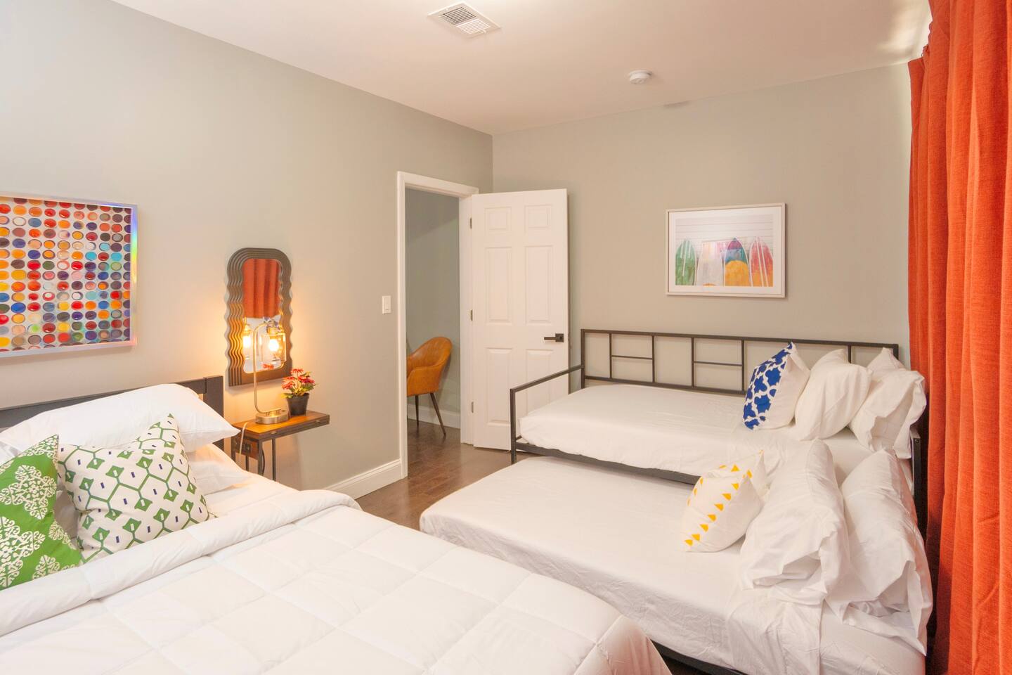 • Sleeps up to 9 guests — 3 bedrooms, 5 beds, 1.5 baths • Private entrance & smart lock self check-in for flexible arrival • Free on-site parking — a major advantage near urban hubs • Pet-friendly — bring your furry companion • Full kitchen & dining area for family meals or group gatherings • Fast Wi-Fi & dedicated workspace — perfect for remote work • Family features including crib, pack ’n play & children’s dinnerware • Comfortable living area with TV and space to relax after full city days Crisp winter light filters through the windows as you settle in after a day exploring Newark’s lively streets or returning from an easy trip into New York City. Inside, the pace slows - a warm, comfortable retreat where you can unwind with a book, share a quiet evening in the living area, or gather together between outings. The neighborhood’s calm hum pairs naturally with cozy indoor moments during the season’s cooler days. Sleeping arrangements The apartment includes three bedrooms designed to give your group space to spread out and rest well. Bedroom 1 features 1 Queen Bed and 2 Double Bed, offering flexible sleeping options for families or friends traveling together. Bedroom 2 includes 1 Queen Bed, and Bedroom 3 offers 1 Queen Bed, with bed linens, extra pillows and blankets, and room-darkening shades to help you settle in comfortably at night. Living spaces After a day of city adventures, you can relax in the living area with a TV, books, and reading material for easy entertainment on winter evenings. WiFi and a dedicated workspace make it simple to stay connected, whether you’re traveling for business or balancing work with sightseeing. Heating and essential comforts throughout the space support a smooth, convenient stay. Kitchen and dining The kitchen gives you room to prepare meals at your own pace, with the everyday essentials you need for breakfast before heading out or dinner after an event downtown. A dining table offers a welcoming spot to gather, sip coffee in the morning, and plan the day ahead. Bathroom With 1.5 baths, the apartment includes a full bathroom with a bathtub and a half bath for added convenience when traveling as a group. Bathroom essentials and hot water are provided, making it easy to refresh after long days out. Accessibility and arrival A private entrance with a smart lock allows for self check-in, and free parking on premises adds ease for guests arriving by car. Exterior security cameras at the front door and driveway support property safety while maintaining privacy indoors. Family-friendly features Traveling with little ones is made simpler with a crib, pack ’n play/travel crib, and children’s dinnerware. Board games offer an inviting way to spend quieter evenings together during the colder months. Neighborhood You’ll be close to Newark Liberty International Airport, Downtown Newark, Prudential Center, NJPAC, and major public transportation connections. Public transit makes trips to New York Penn Station or Port Authority practical, while nearby laundromats provide options for longer stays. Explore top destinations with convenient transit and short drives: ⭐ Prudential Center – Home of the New Jersey Devils (NHL) and major concerts (~15 min) 🎭 New Jersey Performing Arts Center (NJPAC) – World-class shows & performances (~10–15 min) 🗽 New York City (Times Square, Broadway, Midtown) – ~25–35 min via PATH/Buses/Train ✈️ Newark Liberty International Airport (EWR) – ~15-minute drive ⚾ Yankee Stadium & Citi Field (NYC) – ~30–45 min transit 🌆 Hudson River Waterfront Walkway & NYC skyline views – short transit or stroll to ferry routes Top Transit & Accessibility Minutes from Newark Penn Station – direct trains to NYC, Hoboken & NJ suburbs Close to PATH trains, NJ Transit, Amtrak services Short rideshare access to Manhattan, Hoboken & Jersey City Free on-site parking — ideal for road trips and event travel Just minutes from vibrant local favorites and historic districts: Ironbound District — renowned for Portuguese, Spanish, Brazilian dining experiences Top restaurants like Forno’s of Spain, Iberia Peninsula, Seabra’s Marisqueira Local coffee shops, bakeries, and bars popular with visitors and locals alike Short drive to the Outlet Collection at Jersey Gardens for shopping deals near NYC Perfect For Travelers Who Want: ✔ Easy access to New York City sightseeing & Broadway shows ✔ Events at Prudential Center & NJPAC ✔ Business trips with commuter options ✔ Group stays near shopping, dining & cultural entertainment ✔ Airport stays with simple travel connections