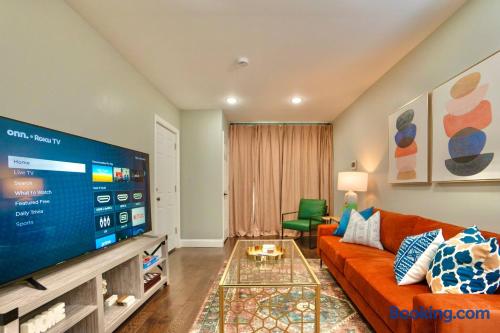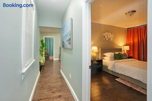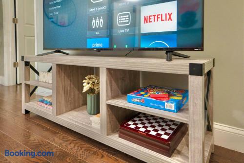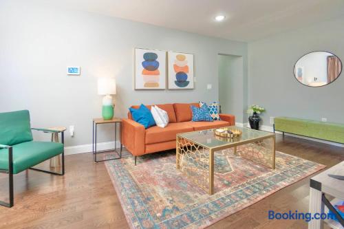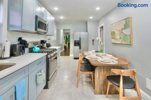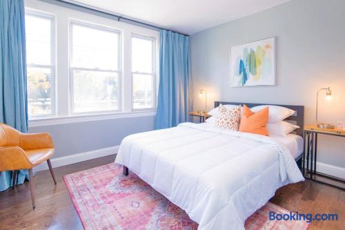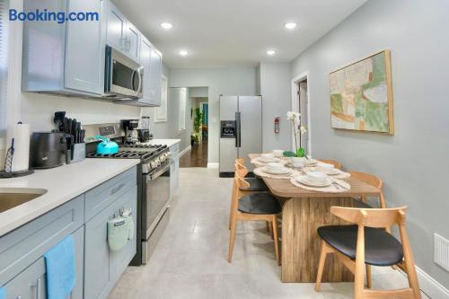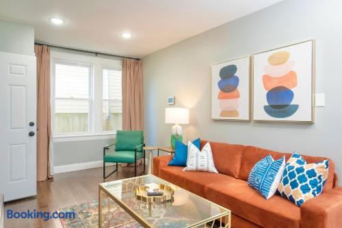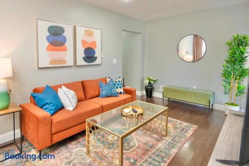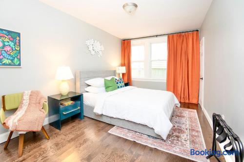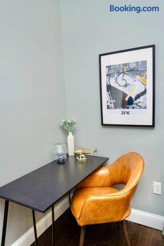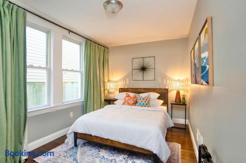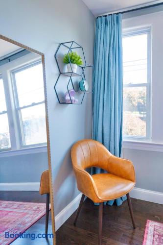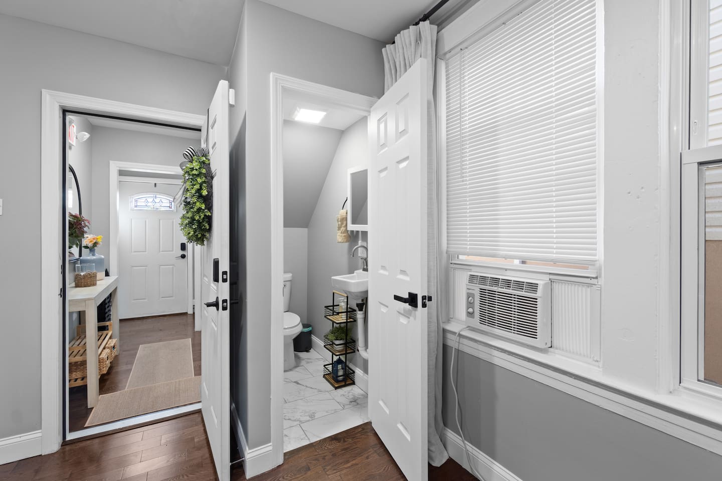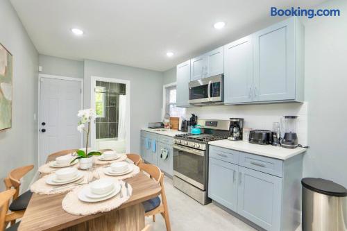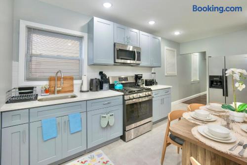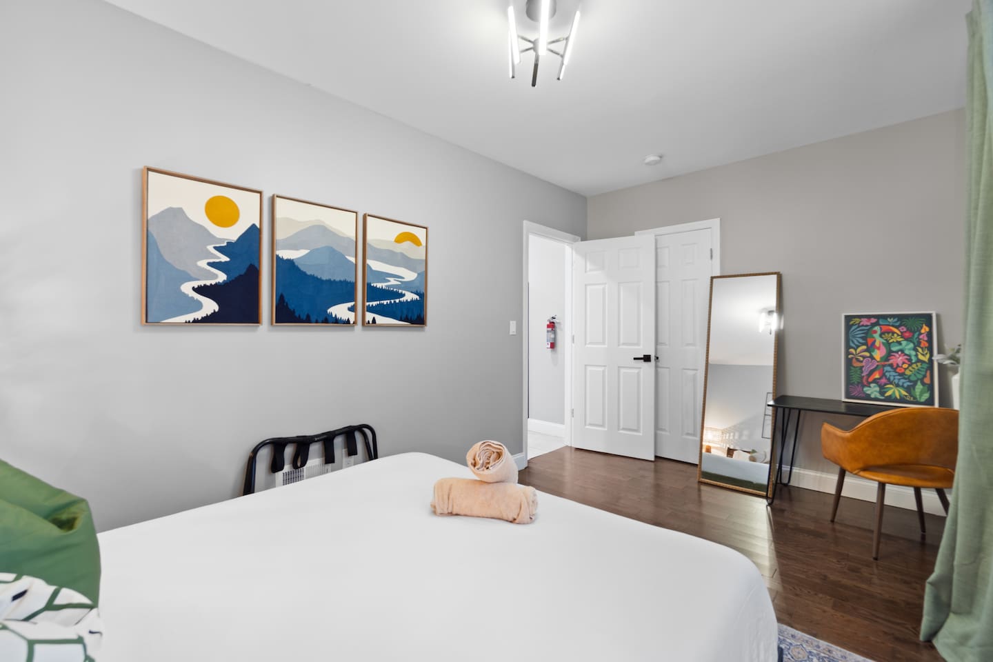 Soft winter air settles over Newark as you step into a calm, welcoming space designed to give you room to breathe between busy days in the city. The single level layout keeps everything easy to access, while the warmth inside makes returning from cold streets or evening commutes feel grounding. Whether you're preparing for a day of transit into New York or settling in after exploring local neighborhoods, the home offers a steady place to unwind. Sleeping arrangements Three private bedrooms provide comfortable space for up to 8 guests. One bedroom includes a queen bed, another offers a queen bed alongside a double bed, and the third features a queen bed. Room-darkening shades, bed linens, extra pillows and blankets, and clothing storage help create restful nights and unhurried mornings, supported by a quiet setting that eases winter travel. Kitchen and dining The kitchen gives you the flexibility to prepare meals or keep simple snacks close at hand. A dining table creates a natural gathering point where you can share breakfast before catching the train, enjoy relaxed dinners, or organize plans for the day ahead. With everything within reach, daily routines feel smooth and familiar. Living and comfort After time spent outdoors or navigating cold weather, the living area offers a comfortable retreat. An HDTV and books provide options for quiet evenings, while Wifi and a dedicated workspace support remote work or trip planning. Air conditioning, ceiling fans, and heating allow you to maintain an ideal temperature throughout your stay, and the single level home with no stairs keeps movement easy for every guest. Bathroom essentials A bathroom with a bathtub and bathroom essentials offers the comforts needed for simple daily routines. Hot water makes morning preparations or evening wind-downs feel more relaxed during the colder months. Family-friendly details Guests traveling with children will find added conveniences such as a crib, a pack 'n play/travel crib, a folding or convertible high chair, children's dinnerware, and board games. These thoughtful features help families settle in quickly and comfortably. Access, parking, and safety A private entrance and self check-in with a smart lock make arrivals straightforward. Free parking on premises and free street parking add flexibility, whether you're driving in or renting a car. Exterior security cameras on property, along with a smoke alarm, carbon monoxide alarm, fire extinguisher, and first aid kit, support peace of mind throughout your stay. Neighborhood and getting around Set within an urban Newark neighborhood, the home places you close to grocery stores, parks, cafes, and cultural attractions. Broad Street, the Prudential Center, and major transit options such as Newark Penn Station and Washington Street Station offer easy access to New York City and surrounding areas. Newark Liberty International Airport is only a short drive away. Perfect for This pet-friendly home works well for families, friends, colleagues, or long term stays allowed of 28 days or more. With a grounded atmosphere and practical amenities, it serves as a comfortable winter base for exploring Newark, attending events, or commuting into the city.