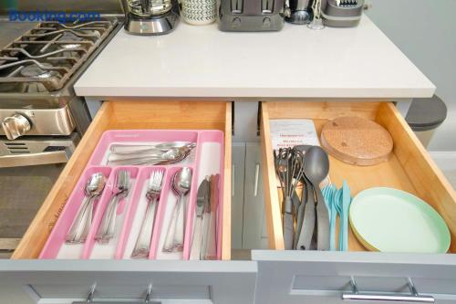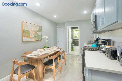 Guests have full access to the entire apartment, including: 🔹Private entrance for easy, secure check-in 🔹Full kitchen, living room, bedrooms, and bathrooms 🔹Outdoor dining and BBQ area 🔹Complimentary Street parking nearby 🔹Wi-Fi and workspace for remote work or school We provide clear check-in instructions and a keyless entry code for a smooth arrival.